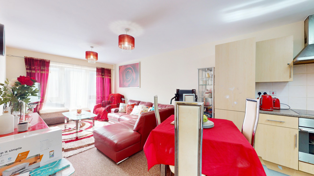 This bright and airy second floor apartment consists of a stylish open-plan kitchen and living area, and a spacious main double bedroom. The bathroom comes complete with a white three-piece suite with a shower over bath Bike storage subject to availability as well as underground parking.